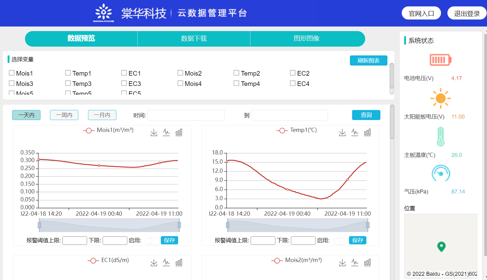 NB-IoT/GPRS通信:可通過(guò)數(shù)據(jù)管理平臺(tái)實(shí)現(xiàn)數(shù)據(jù)遠(yuǎn)程實(shí)時(shí)查看和下載